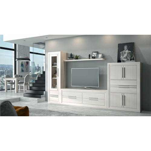 Quick view Salón Divogue Estoril Modelo 20C Vitrina de 60 izquierda con bancada madera Estoril. Mesa TV de 154 con bancada madera Estoril. Vitrina baja derecha con bancada madera Estoril....