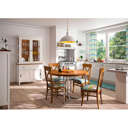 Quick view Comedor Grupo Seys Amberes Modelo 17C Vitrina con bajo Amberes (112 x 210 x 44 cm)Mesa redonda Santa Clara 120 (120 x 76 cm)Silla Cruceta tapizada Grupo 3 (46 x 97 x 54 cm)Vajillero 4...