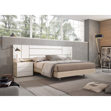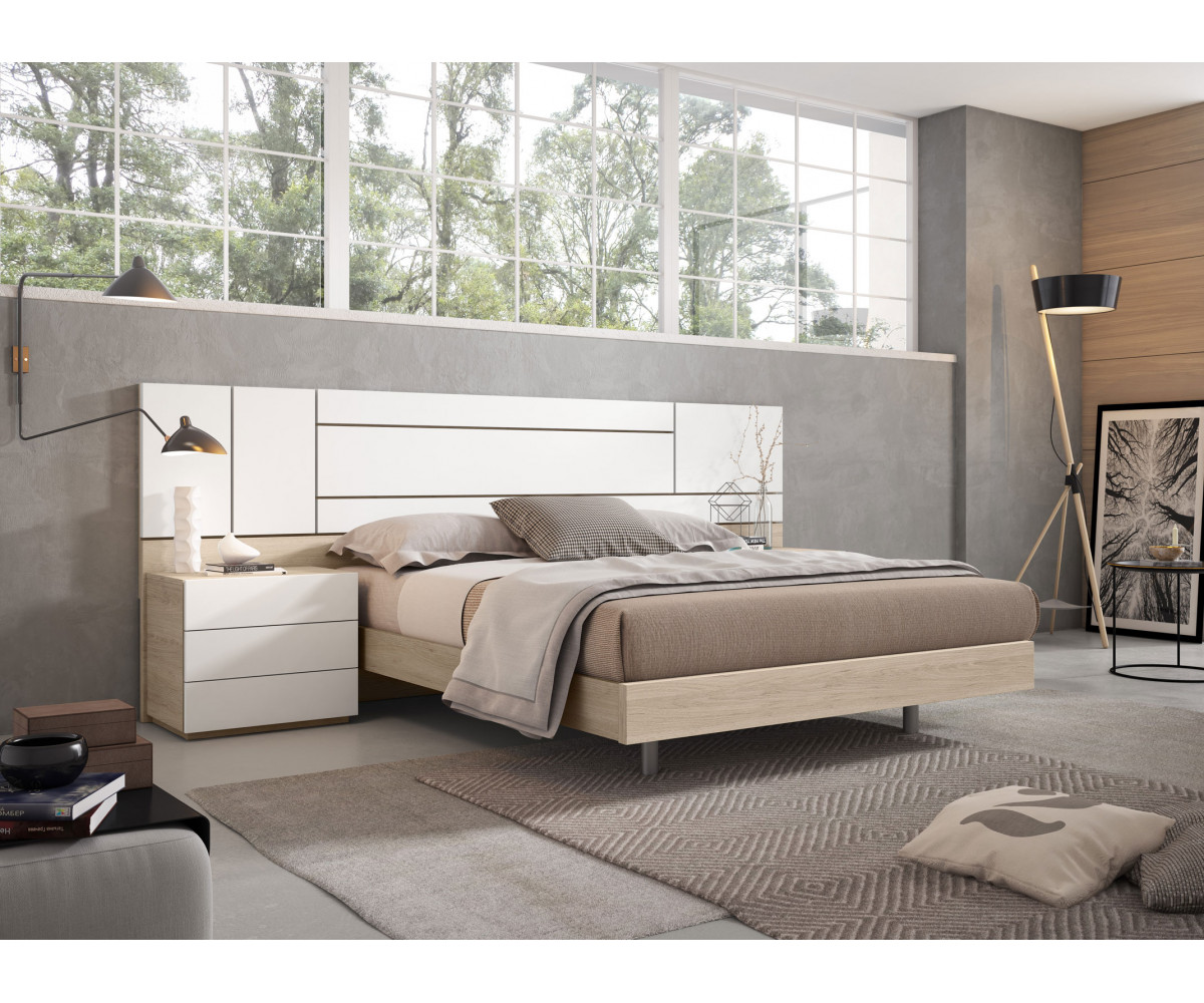 La linealidad del cabecero WOODS marca el estilo de esta composición.