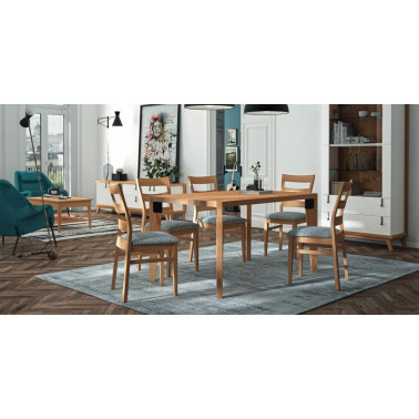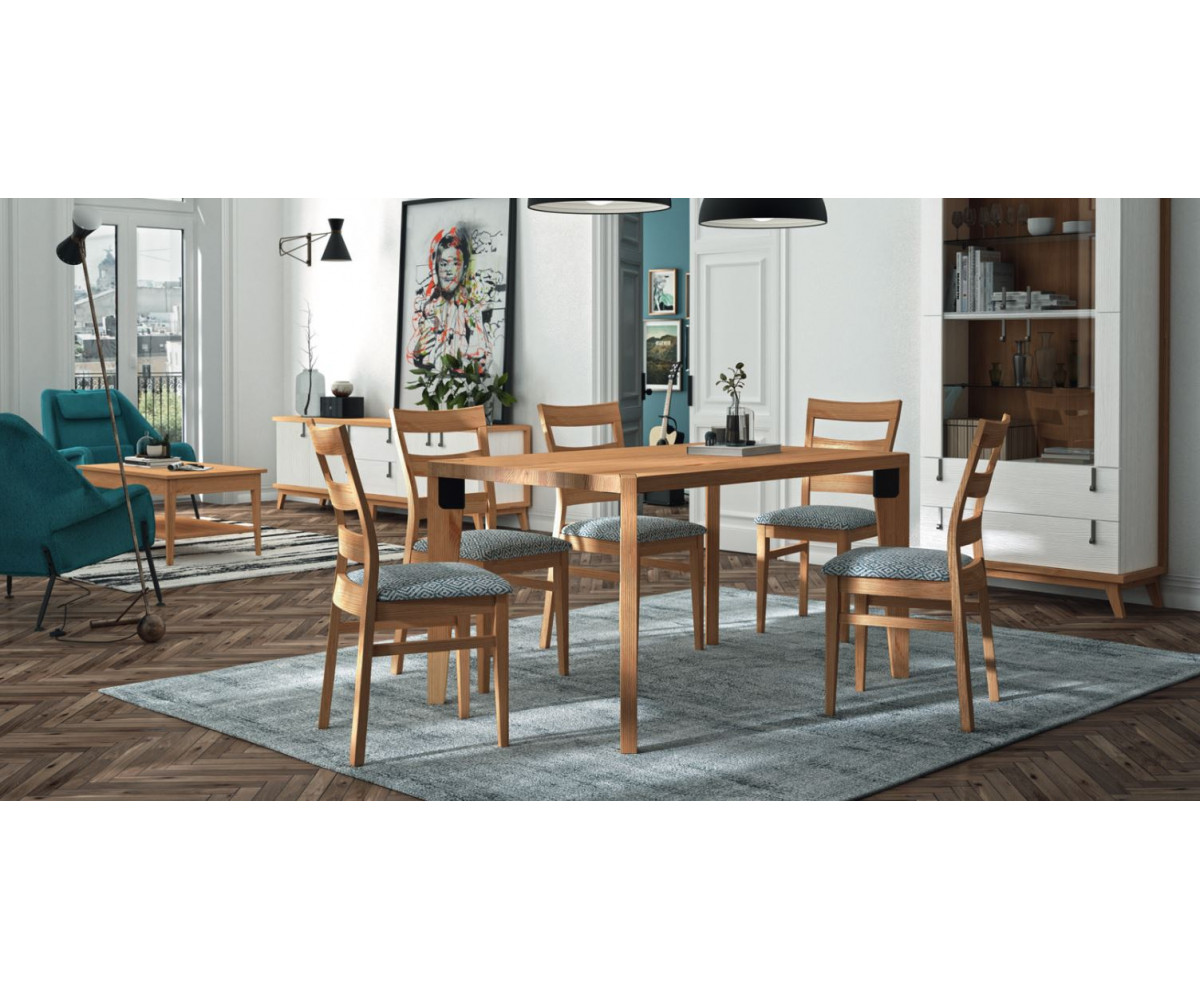 Quick view Comedor Divogue Sajonia Modelo 09C Mesa de 160 desplazable pata agujada - 160 x 76 x 90 cm (extendida 220 x 76 x 90) se amplía solo tapa. Silla Fanny. Vitrina baja Sajonia.