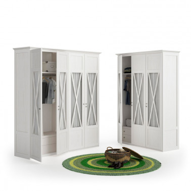 Armario de 4 puertas cristal-visillo Mediterráneo (225 x 240 x 63 cm)