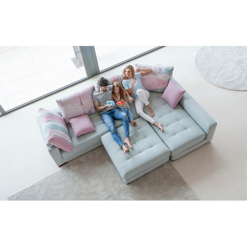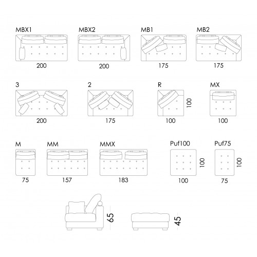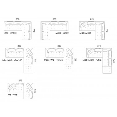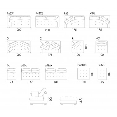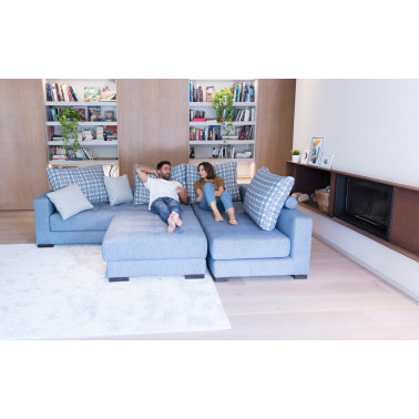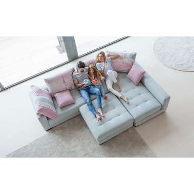 Existen varias medidas de módulos y de puffs con las que podemos crear la composición que más se adapte a nuestras necesidades. Otra de las grandes ventajas de Manacor es que es un modelo tan bonito por delante como por detrás. Esto viene muy bien para quienes quieran separar la zona del comedor de la sala de estar.