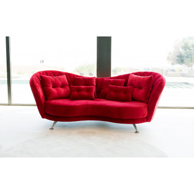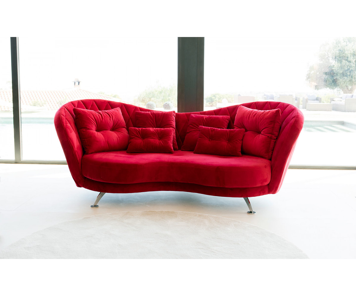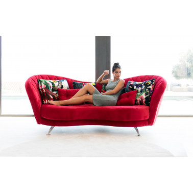 Josephine es un sofá elegante de diseño avanzado. Inspirado en la tipología clásica de sofá con capitoné en el respaldo, pero con una línea mucho más actual, el resultado es una pieza espectacular. Adornado con varios cojines de decoración de distintos tamaños y formas que nos permiten crear interesantes combinaciones de telas. Sus curvas lo hacen especial, tan bonito por delante como por detrás.