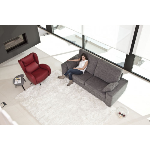 Dispone de varios tipos de chaisse longue con distintas medidas y opciones: rectos, con curva, con brazo corto o con arcón y reposapiés elevable. Su respaldo alto de fibra le aporta una gran comodidad.