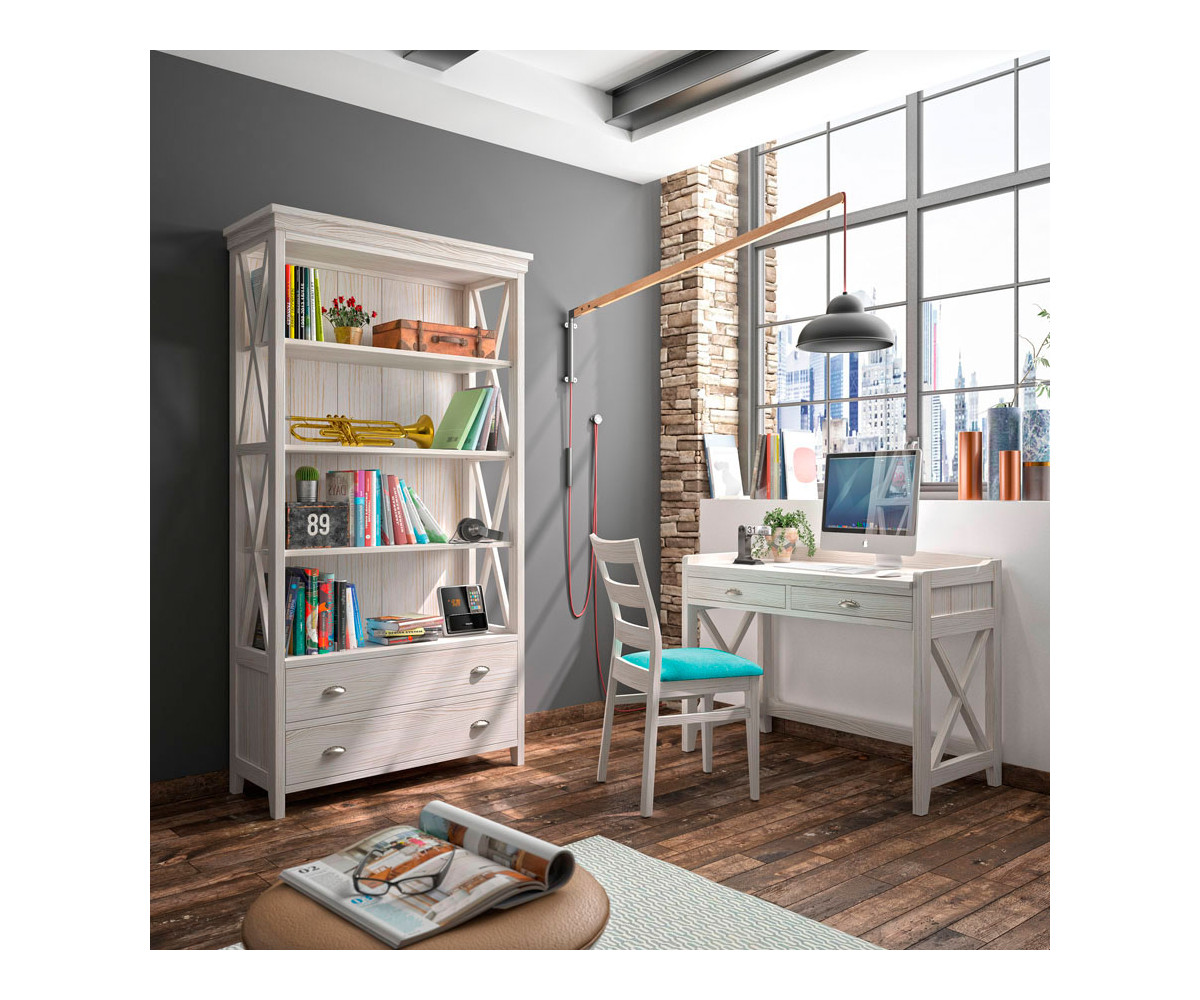 Mesa de estudio Verona (110 x 84 x 55 cm)Silla Segre tapizada Grupo 2 (46 x 88 x 52 cm)