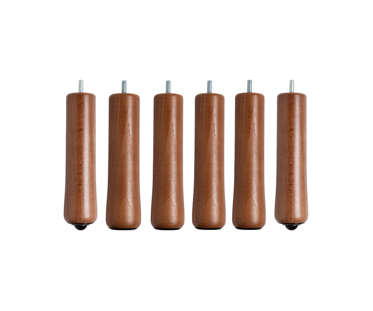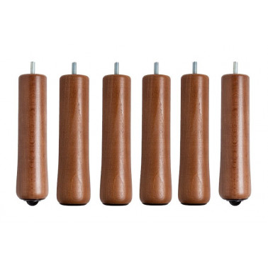 Juego de seis patas en madera maciza de haya, barnizada en color nogal.
