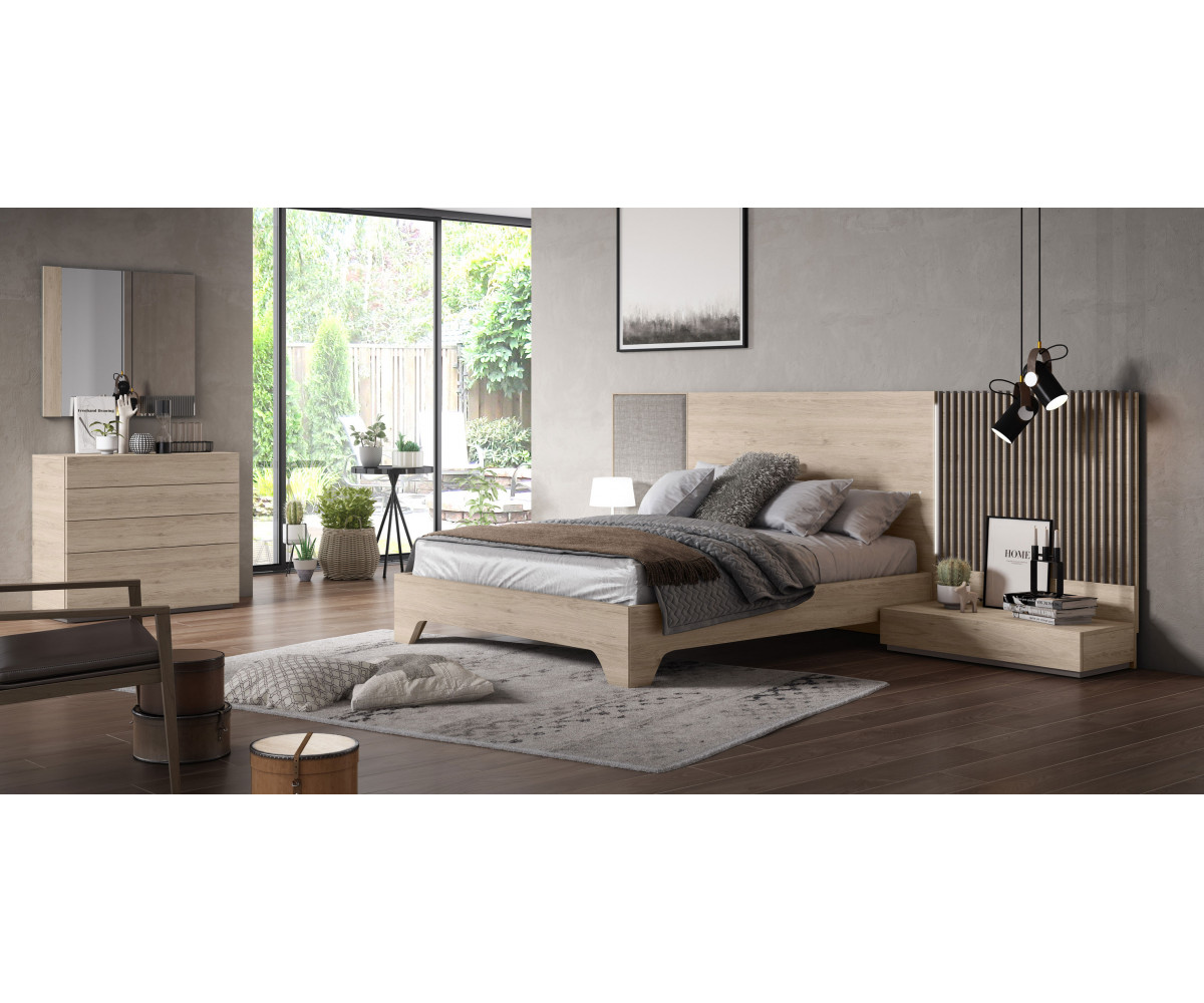 Composición en Nord y Vulcano, que se combina con el tapizado Gris medio en una de las alas. La ala OAK, con sus líneas depuradas, llena el ambiente de personalidad.